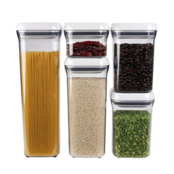 - Use clear containers for bulk ingredients. Store grains, flours, nuts, seeds, etc. in clear airtight storage containers with labels. This will not only make your pantry more organized, but also protect your food from bugs.